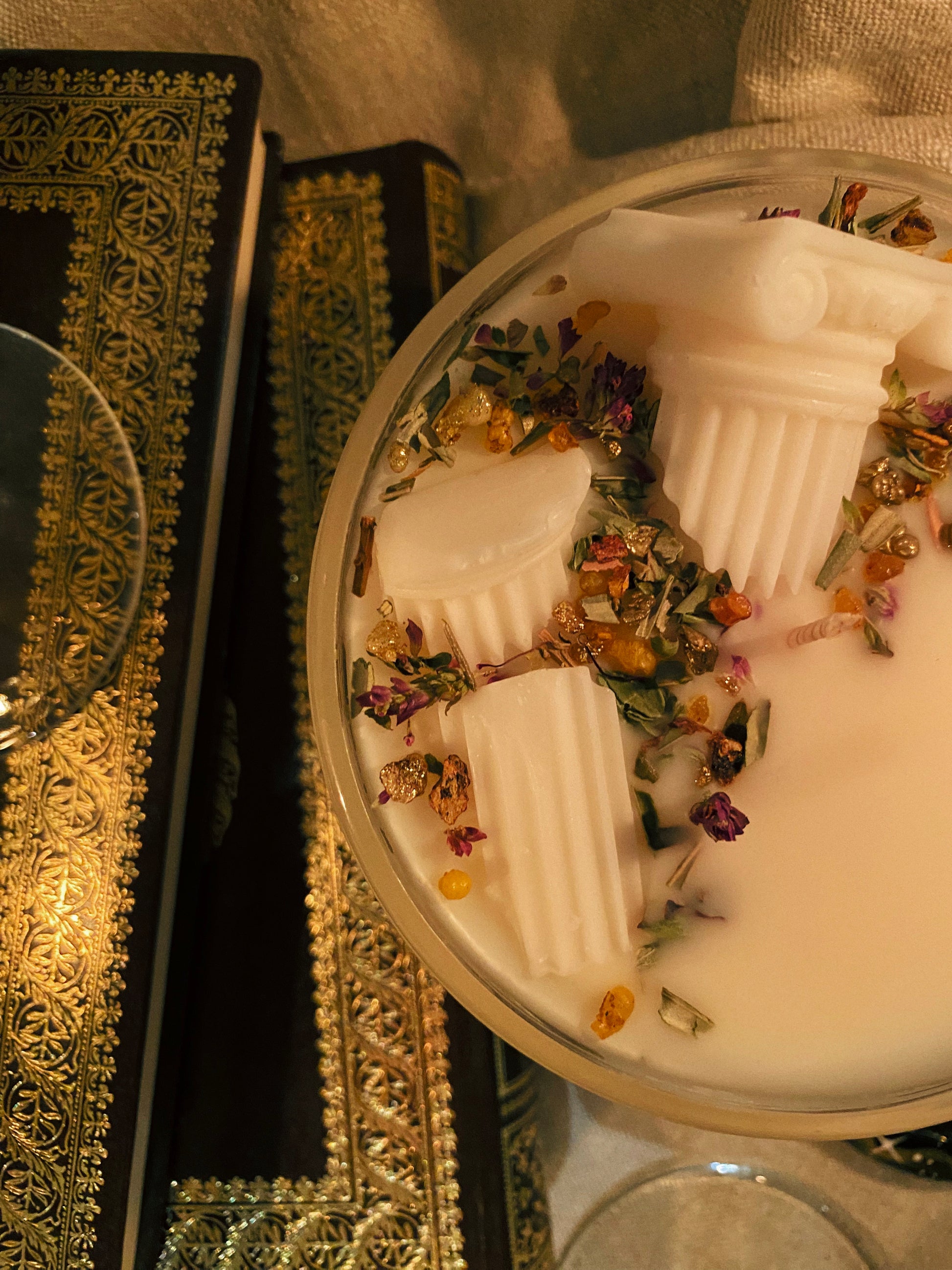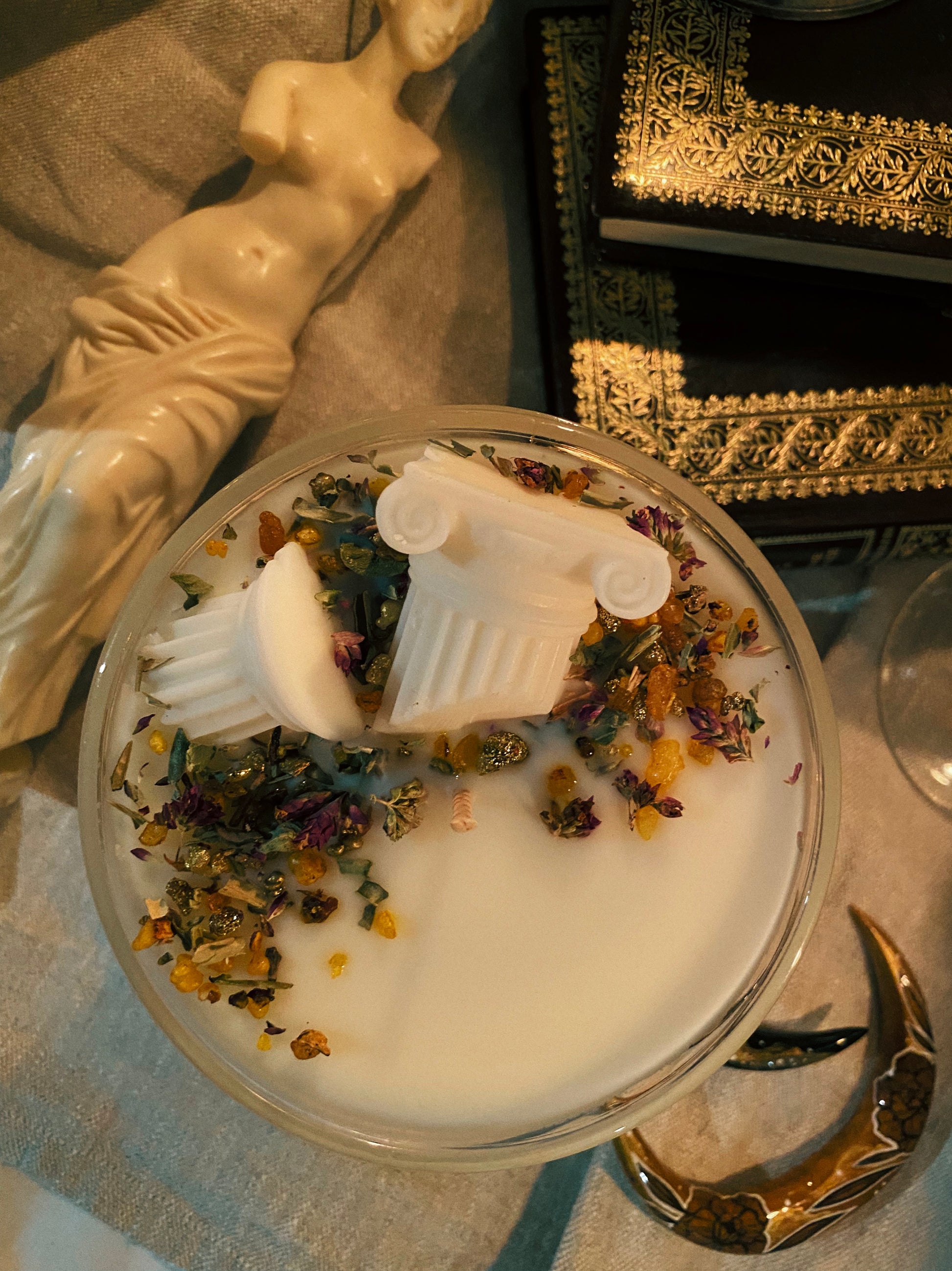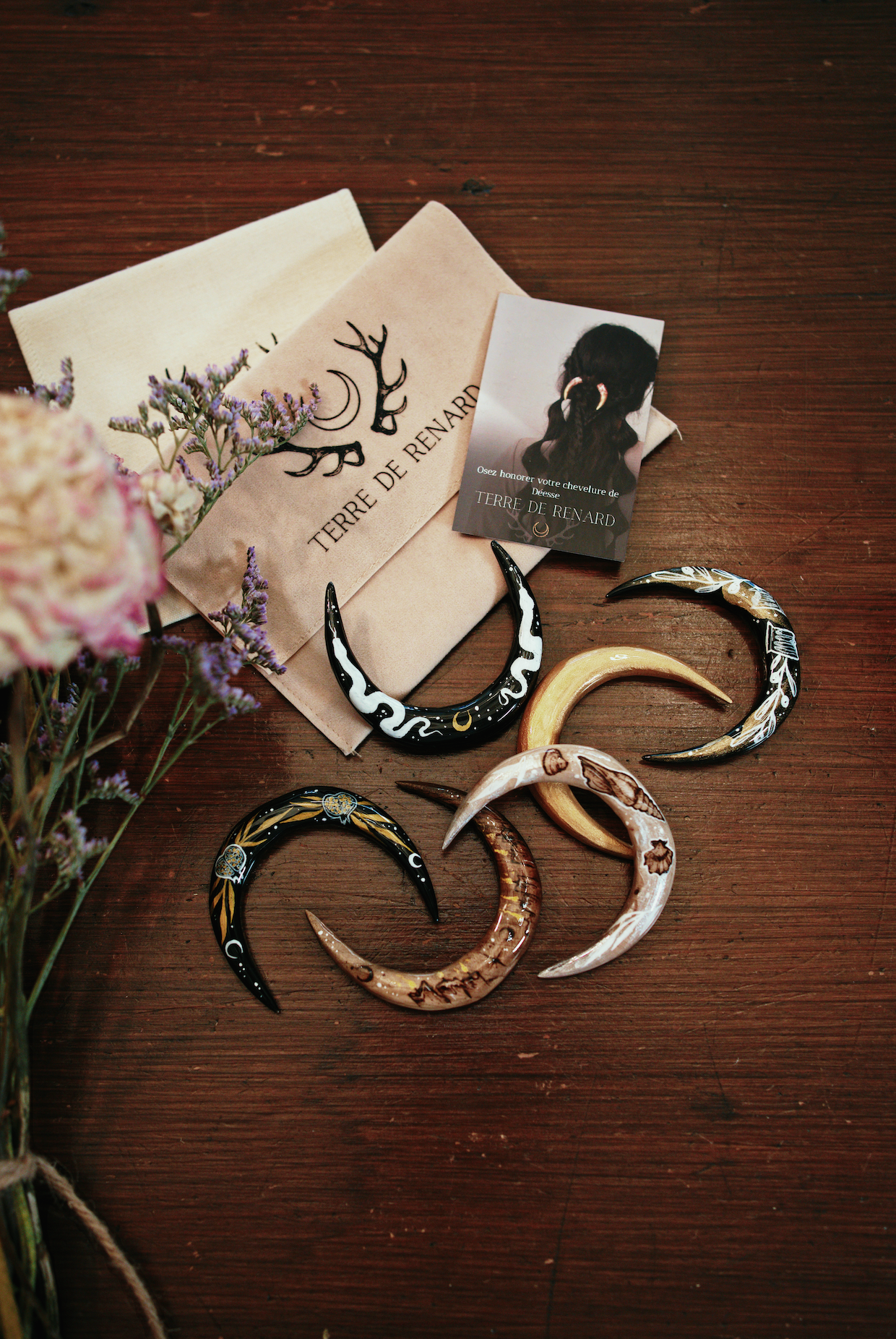 Une flamme mystère renfermant un bijou rituel, une broche lunaire signée Terre de Renard. Un artefact à découvrir une fois la cire consumée, inspiré des divinités grecques et pensé comme un talisman.