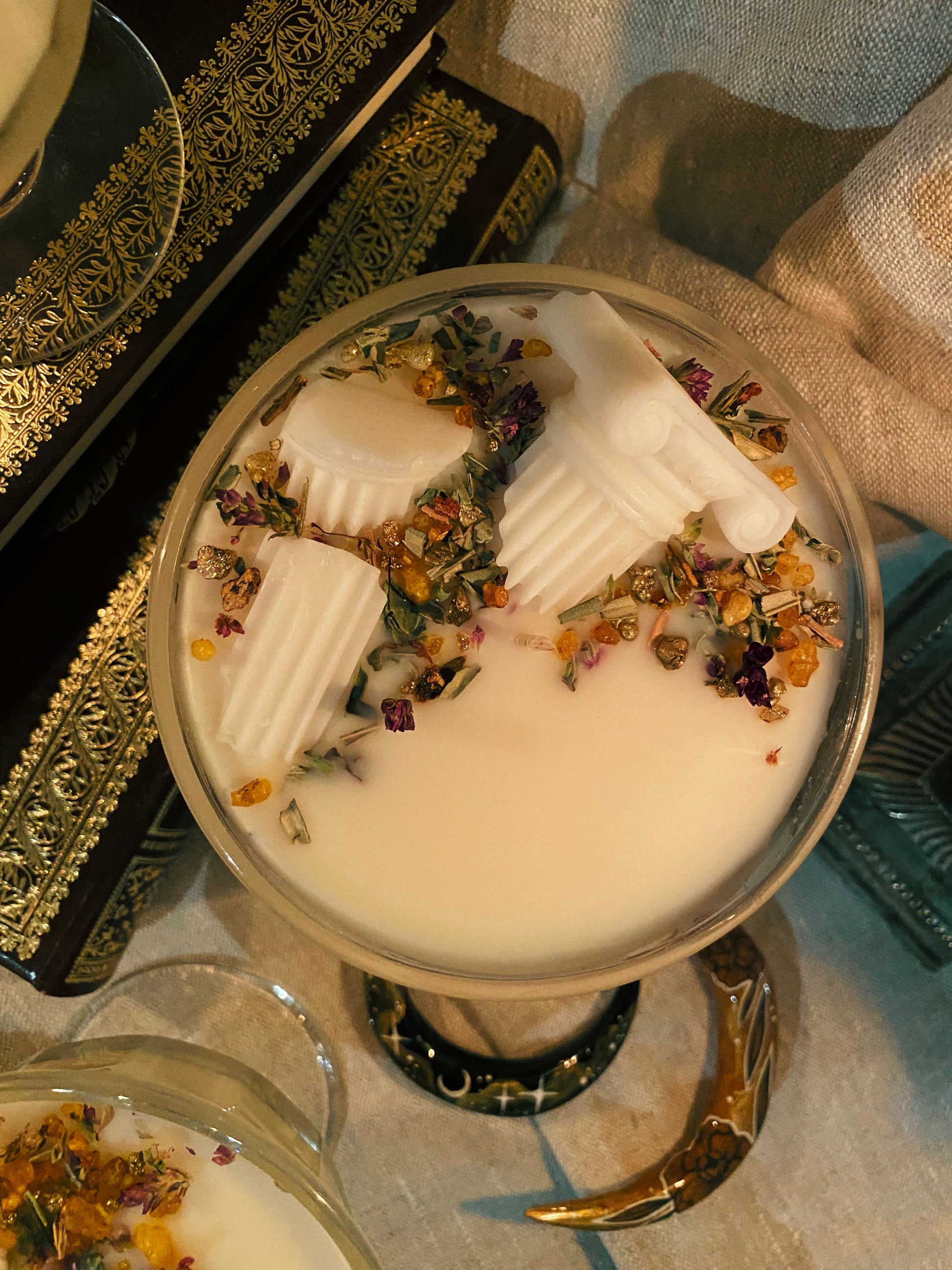 Ornée et imprégnée de plantes consacrées, choisies pour leurs vertus spirituelles profondes, cette flamme renferme une puissance que vous découvrirez à travers le livret qui l’accompagne. Vous y trouverez son histoire, les secrets de chaque plante et leur symbolique, ainsi que son sigil, un symbole à garder précieusement, afin de renforcer votre lien avec ses énergies.