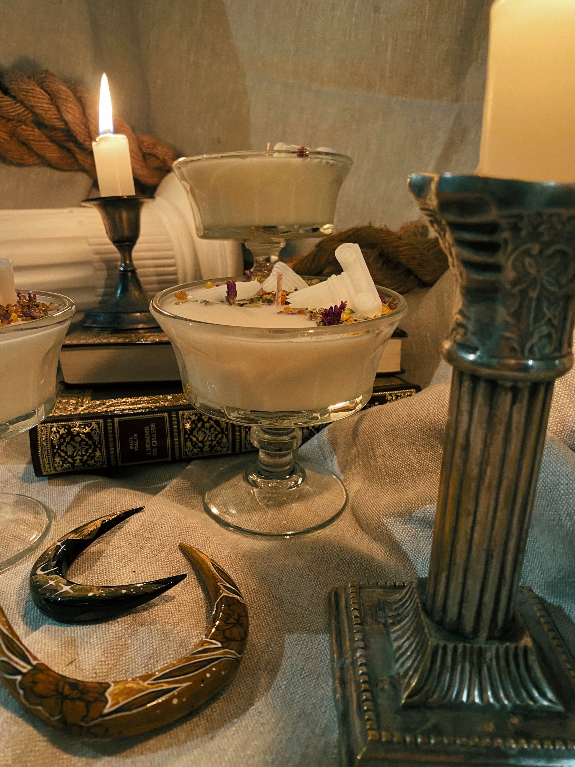 C’est une flamme rituelle, une offrande de lumière. Elle ne se consume pas, elle consacre. Elle accompagne les gestes qui relient l’invisible au tangible : le tracé d’un cercle, l’allumage d’un encens, une prière murmurée entre deux battements de cœur.