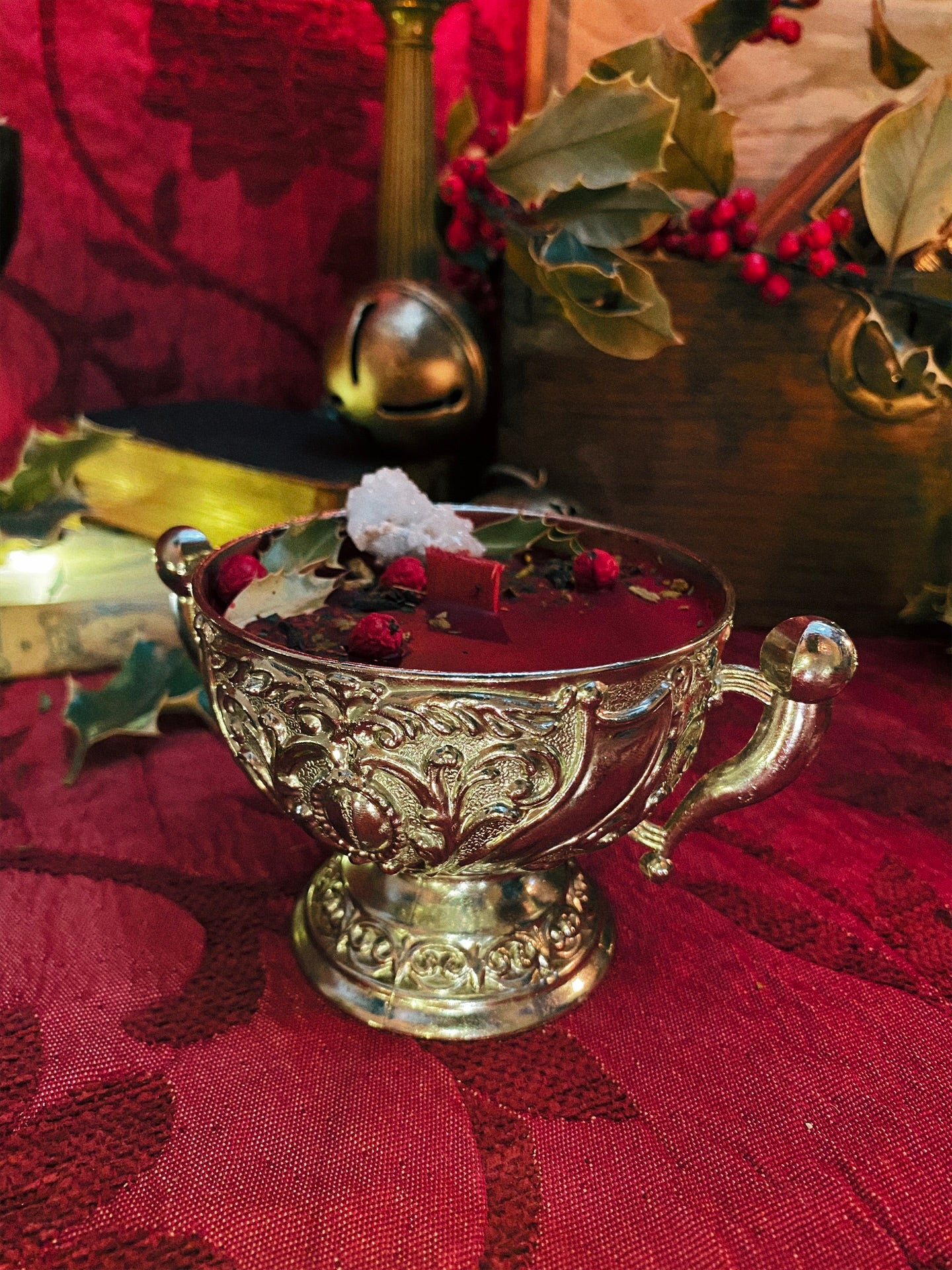 Dans la nuit la plus longue, lorsque les foyers s’éteignaient et que la terre semblait retenir son souffle, on levait le Calice de Jòl vers le ciel noir. Sa lumière évoquait le premier rayon du soleil renaissant, une promesse gravée dans l’obscurité. On disait que cette flamme veillait sur les âmes patientes qui attendaient l’aube, leur offrant chaleur et bénédiction.