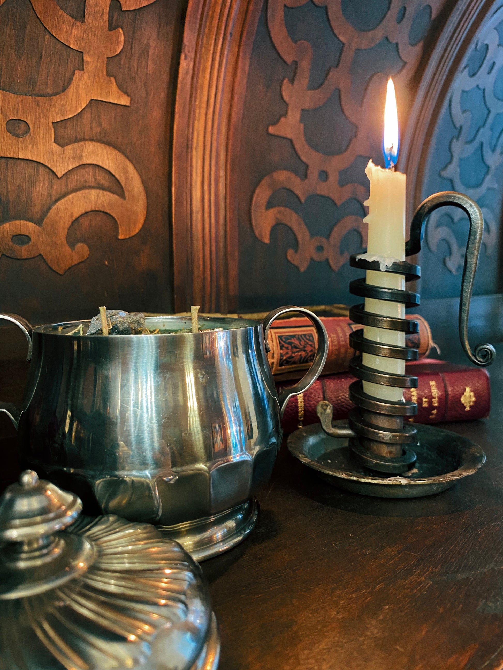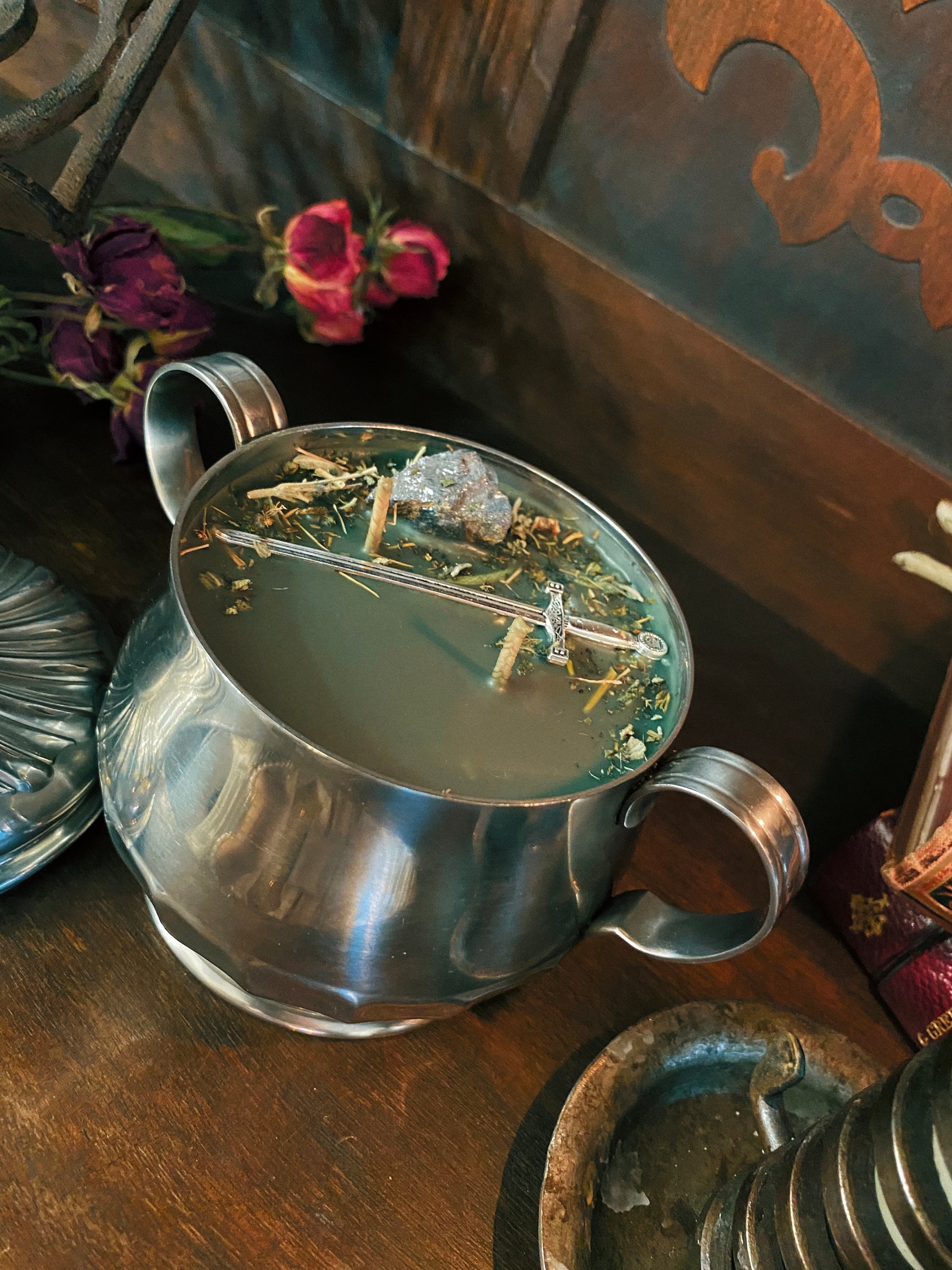 Sous l’armure résonne le battement d’un cœur façonné par la guerre et le temps. Cette flamme est citadelle, cette cire est forteresse : elle abrite l’esprit de ceux qui se dressent encore, fiers et inébranlables.