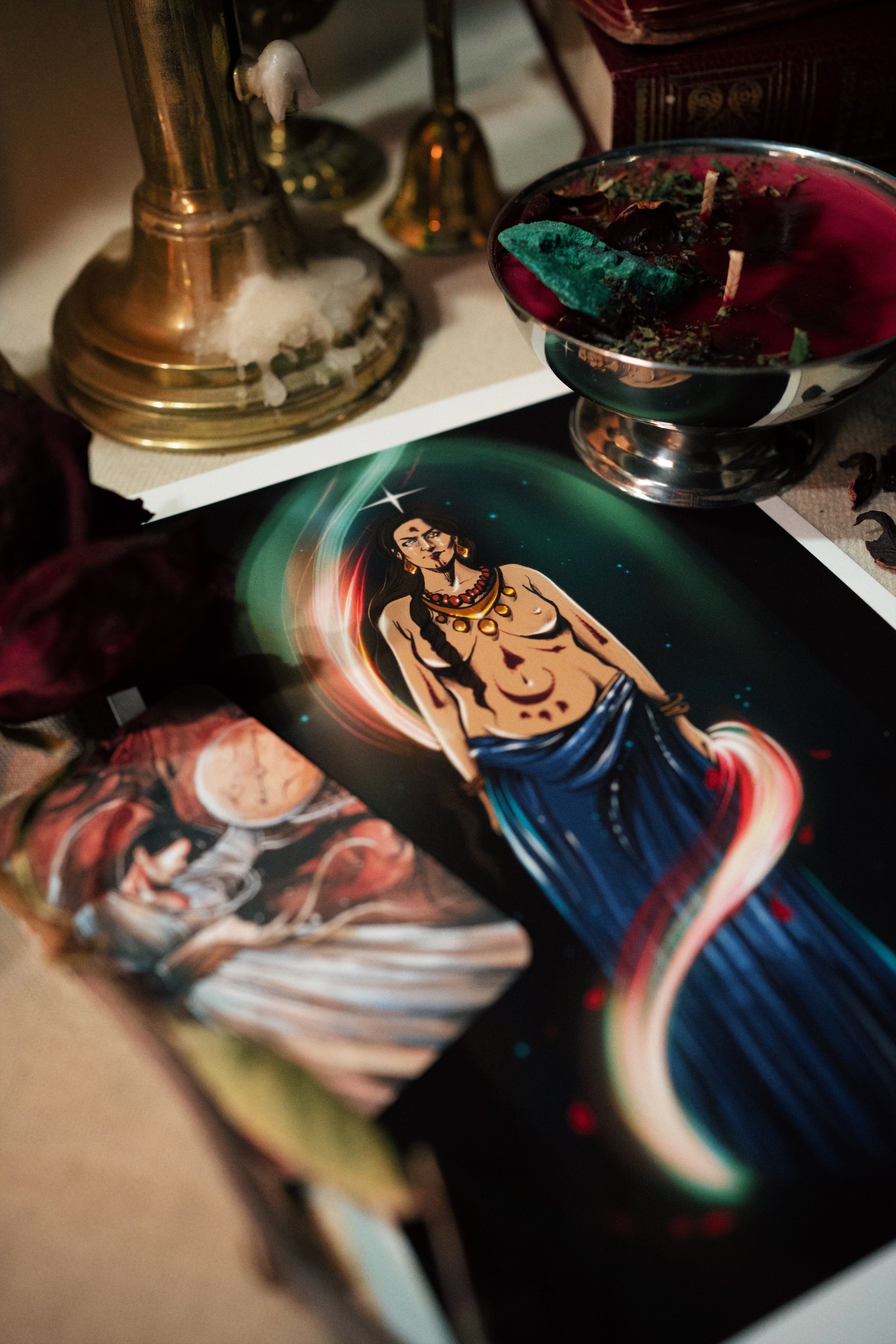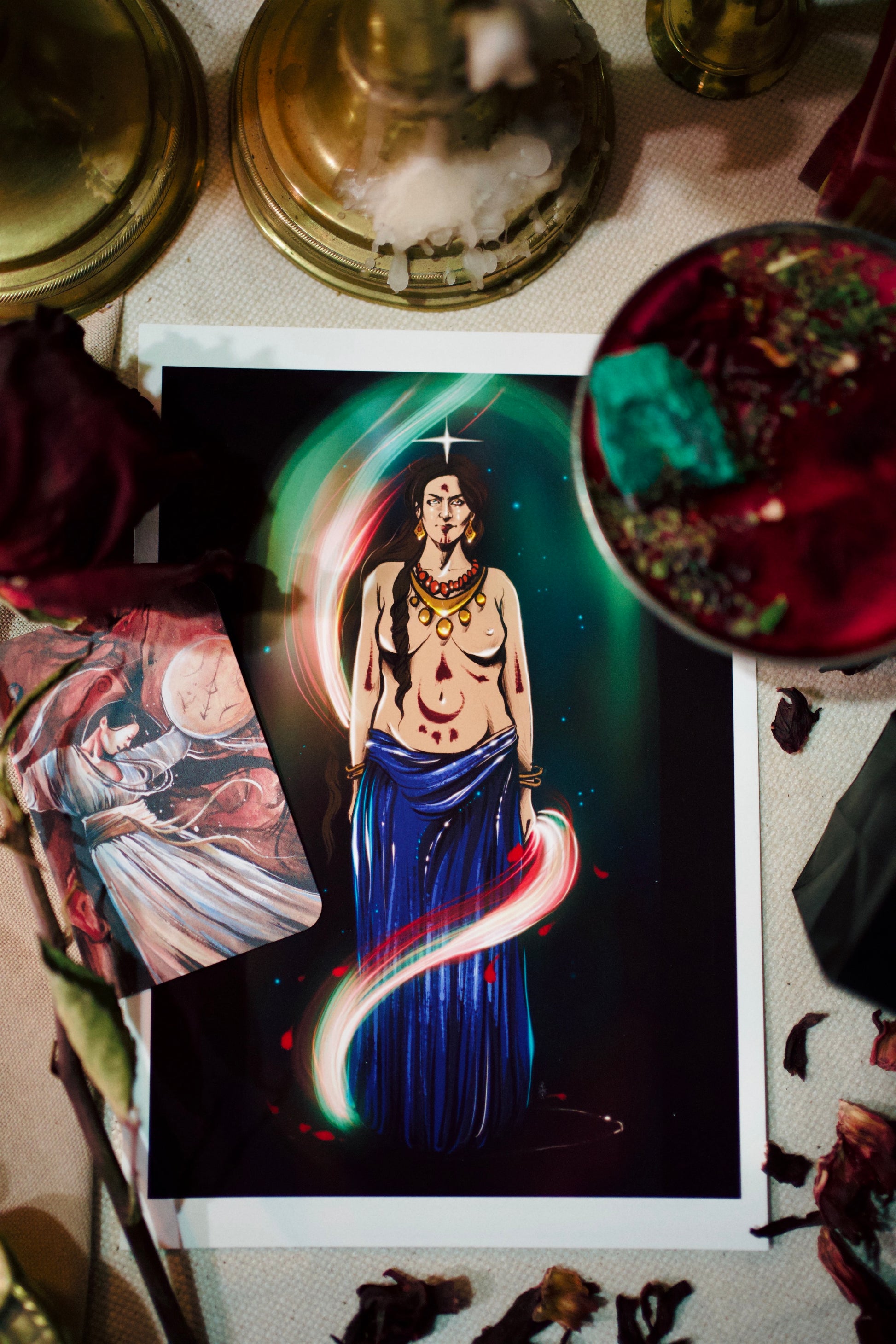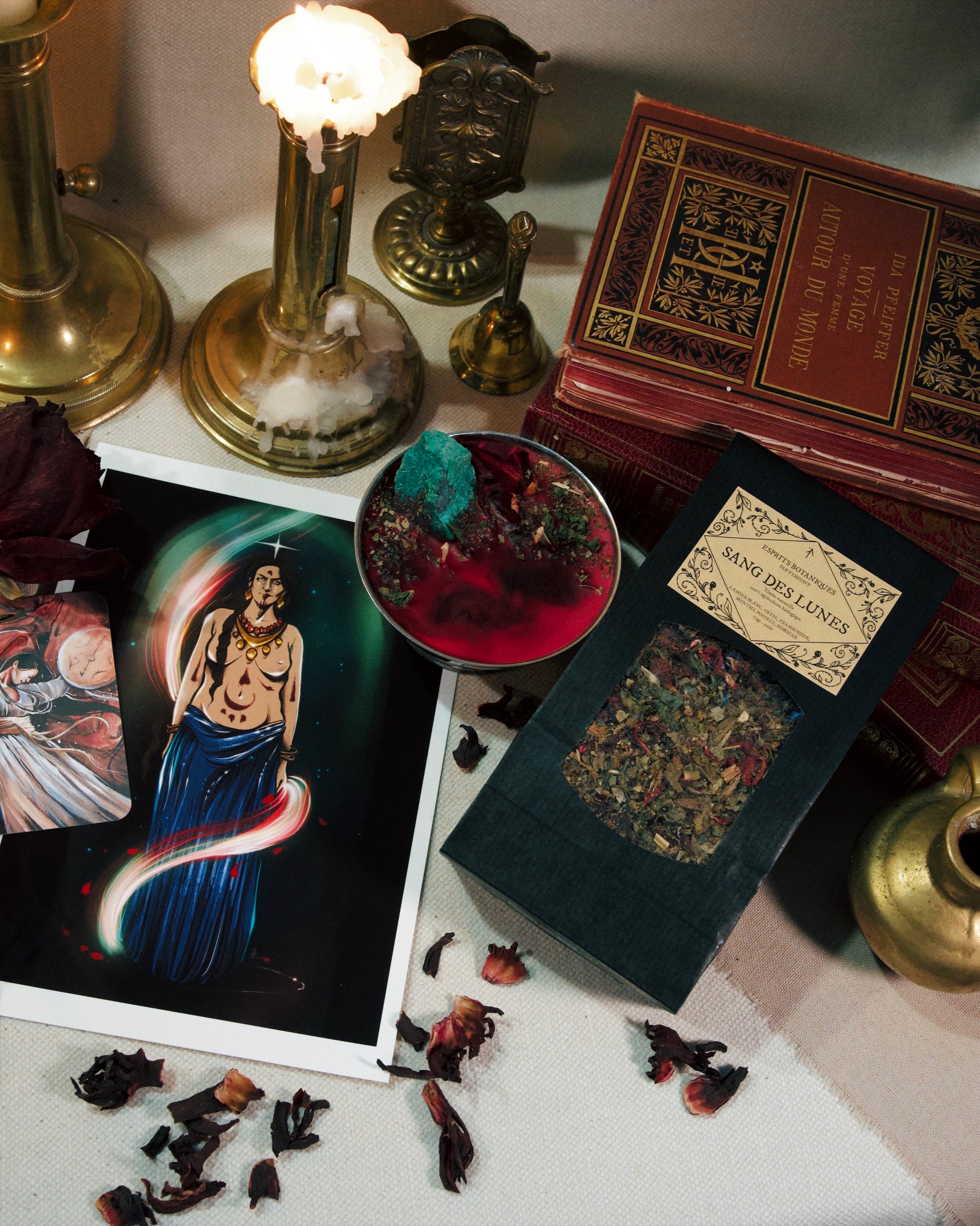 Elle est un miroir. Elle est la femme sauvage, la sorcière oubliée, l’énergie lunaire qui coule dans les veines de toutes celles prêtes à se réapproprier leur pouvoir. Elle nous murmure que notre sang est magie, que nos cycles sont des rituels, et que la véritable force réside dans l’acceptation de notre nature profonde.