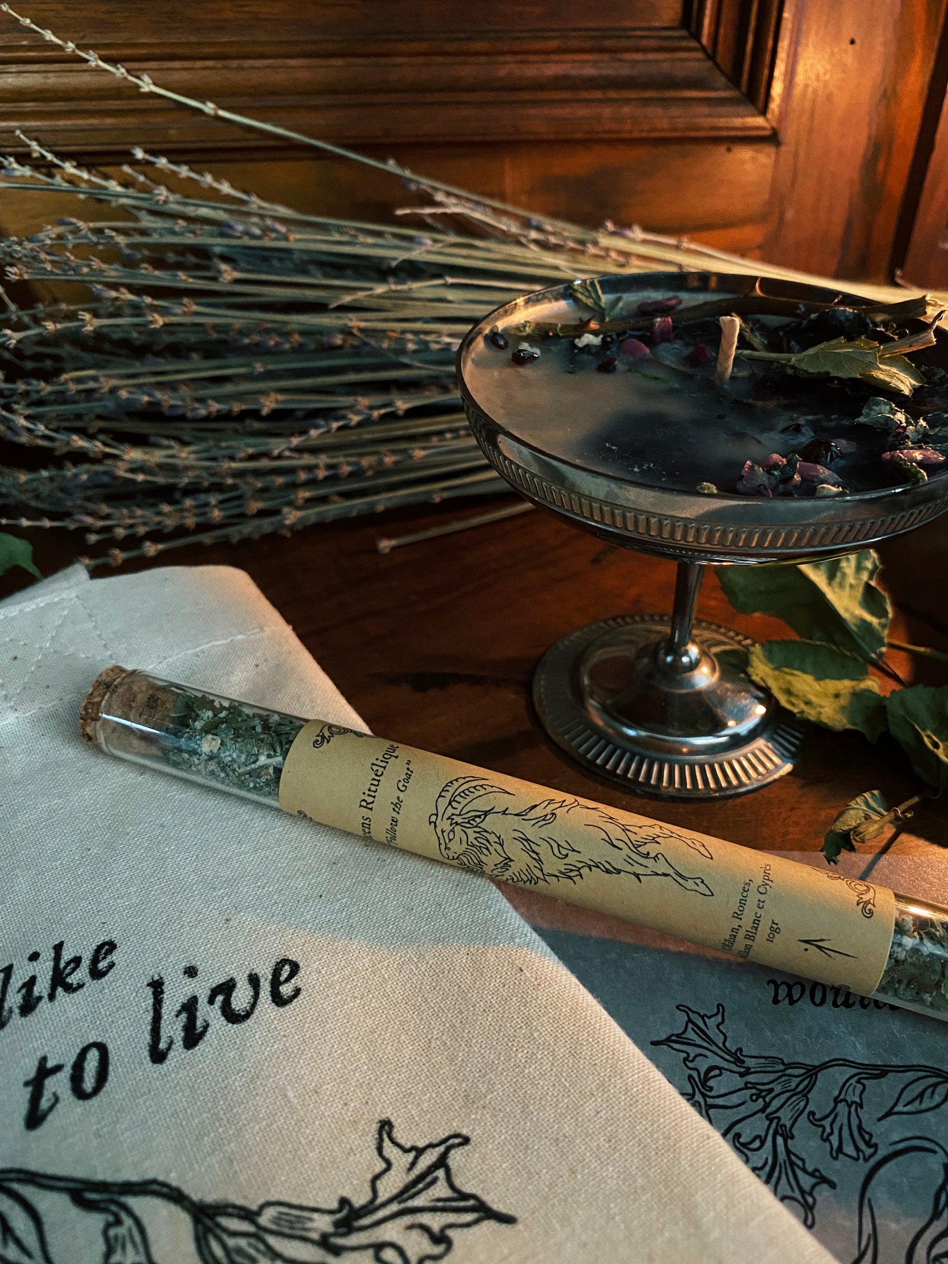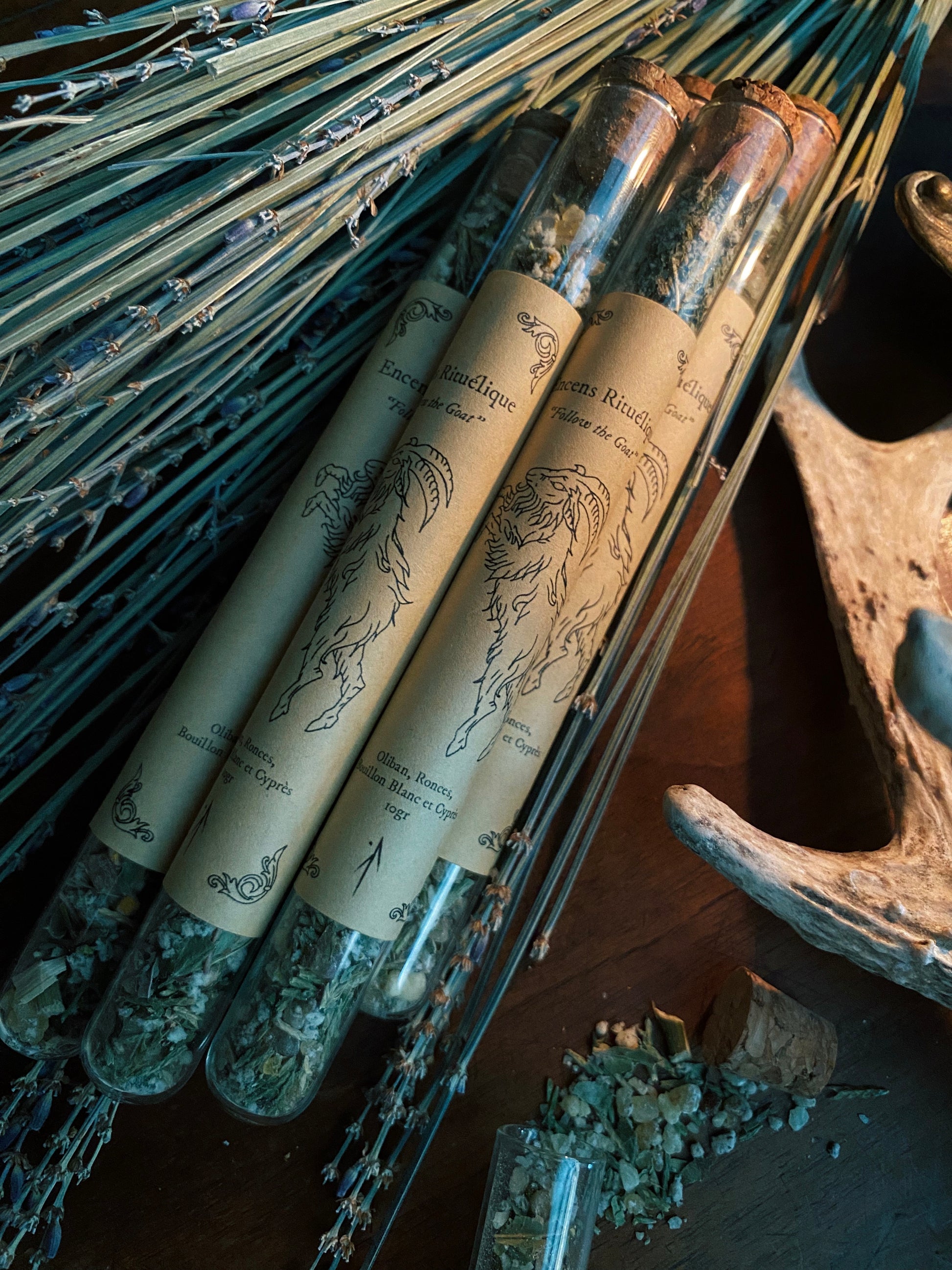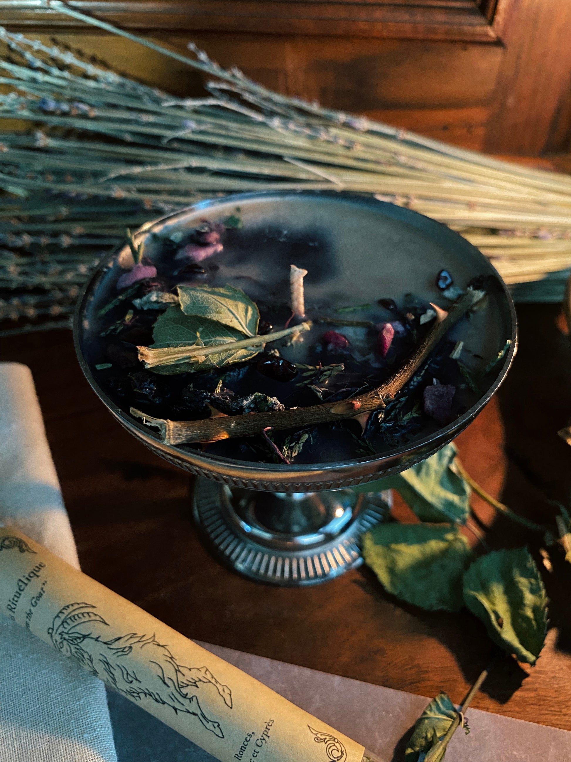 ✧ Un Encens Rituélique composé d'oliban, de ronces, de bouillon blanc et de cyprès. Un savant mélange à utiliser sur un charbon.