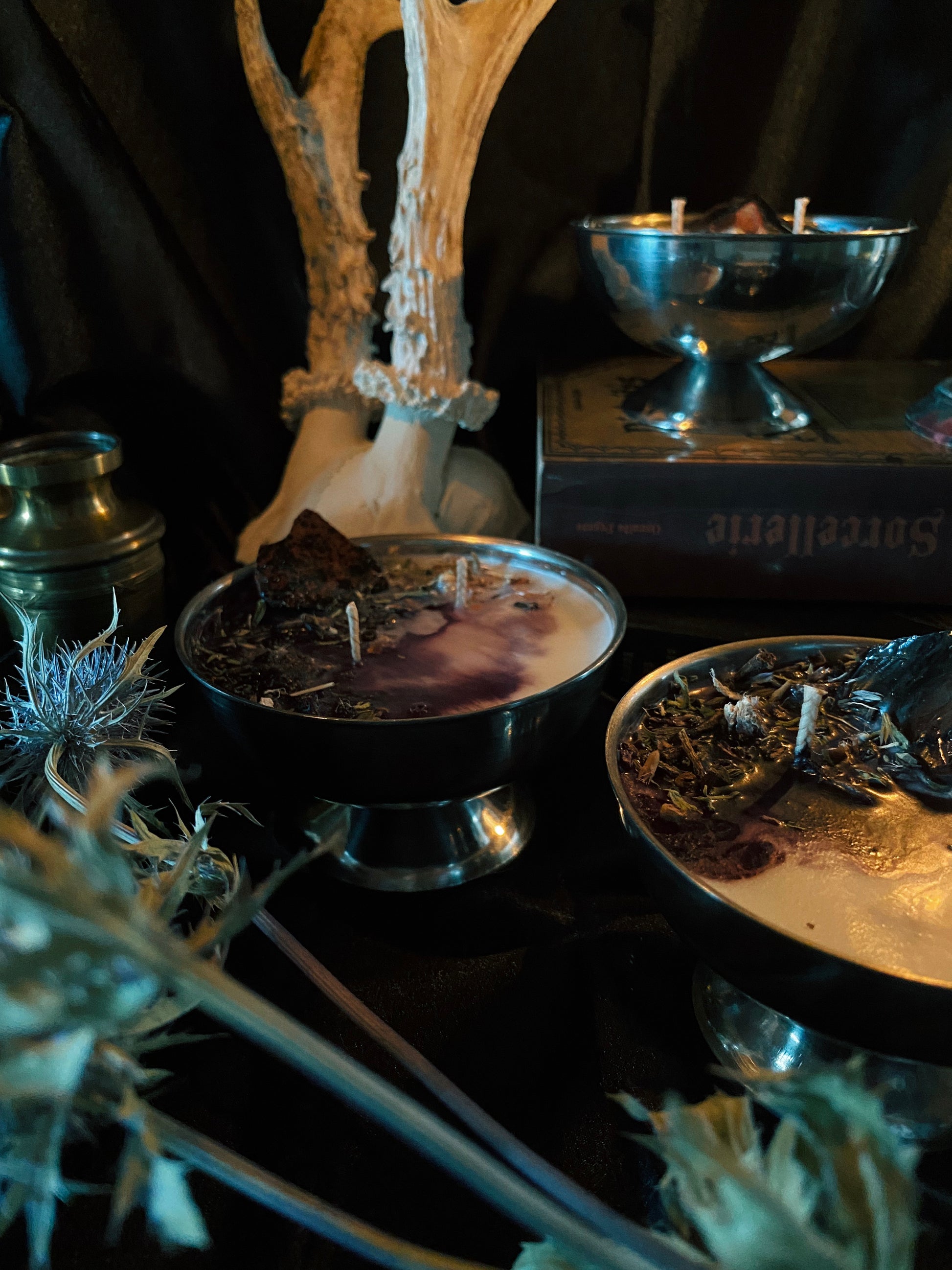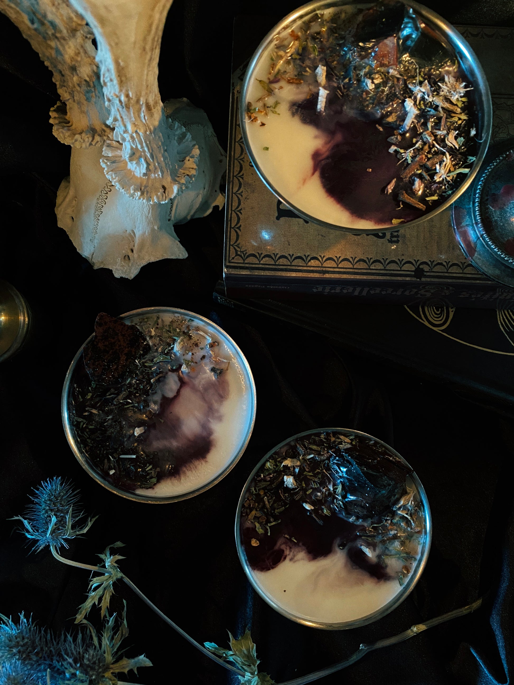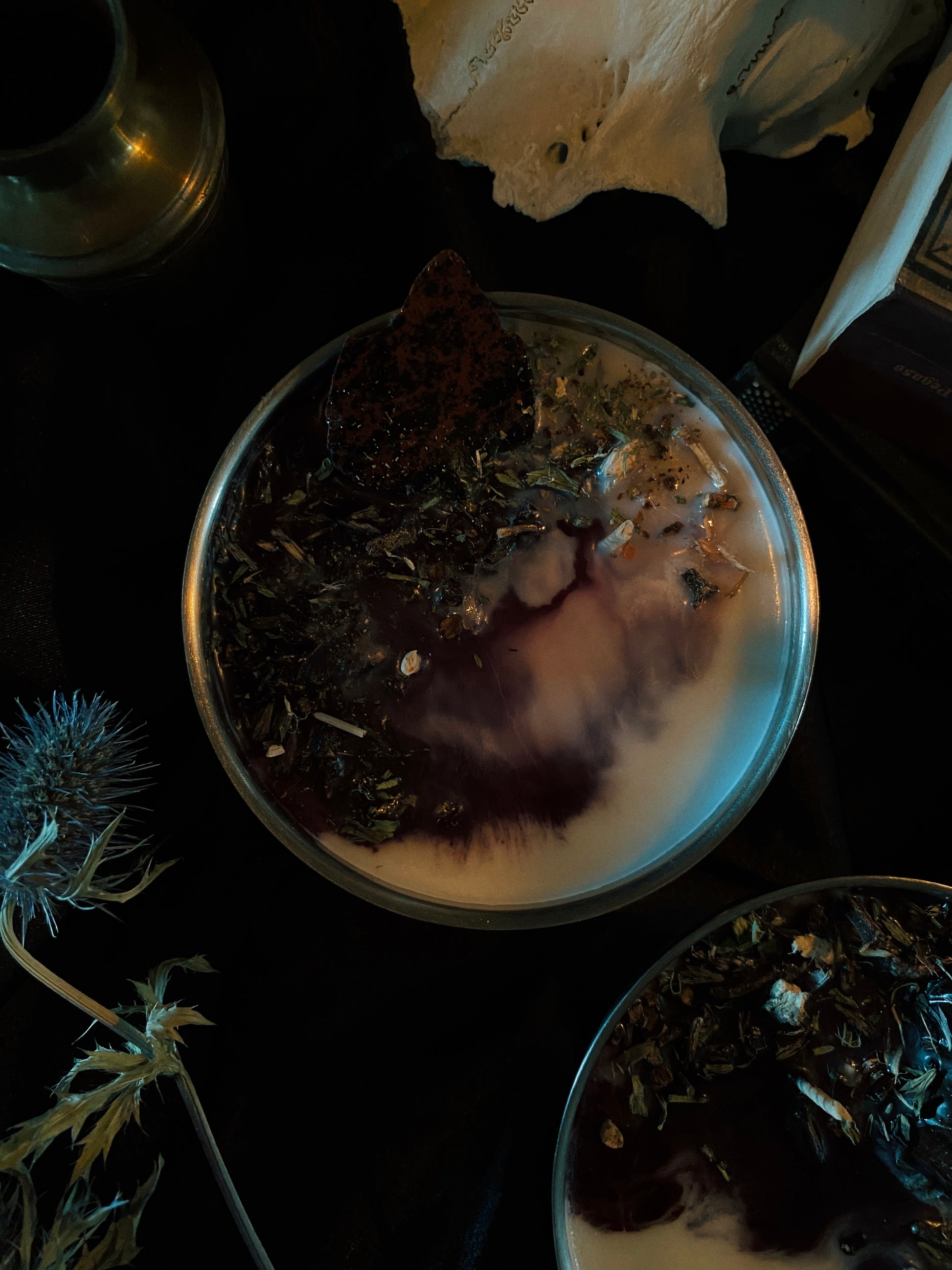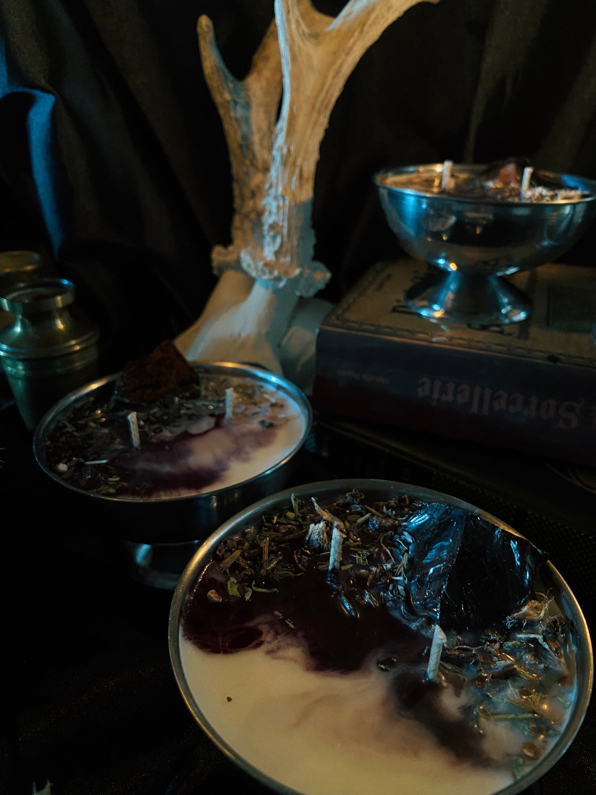 Ornée d'une obsidienne acajou, de clous de girofle, de racines de guimauve, d'hysope et d'autres merveilles aux vertus spirituelles.