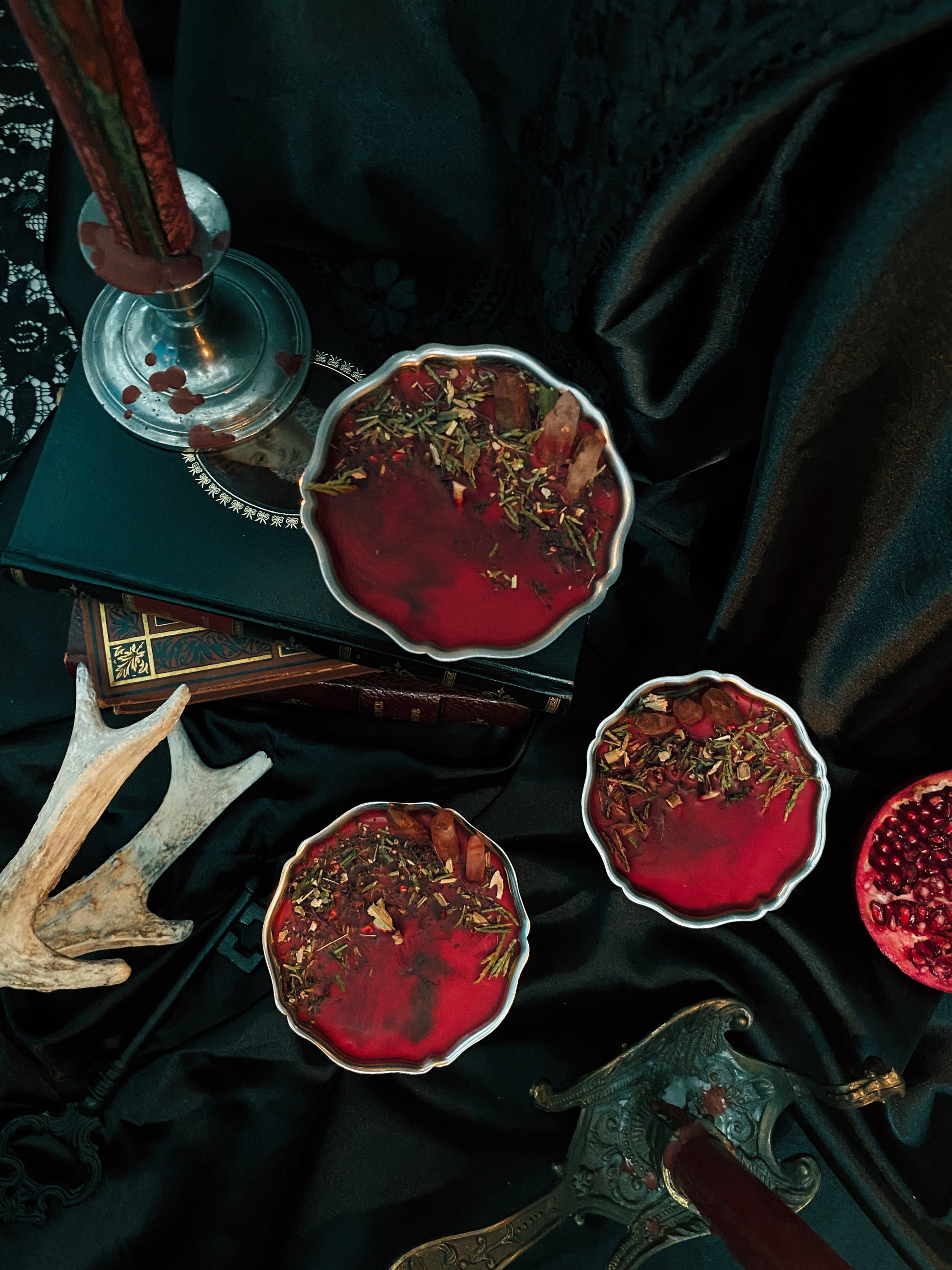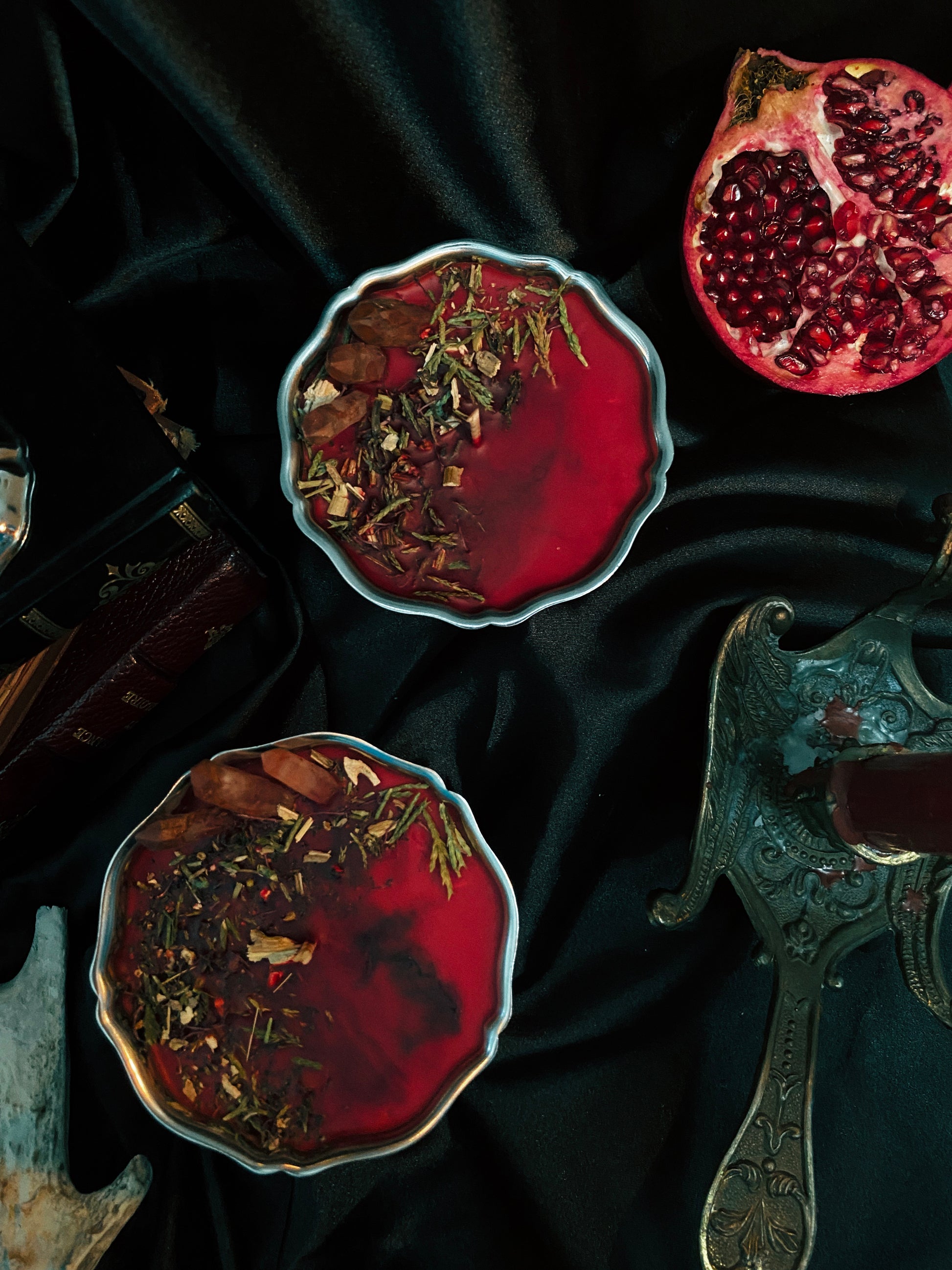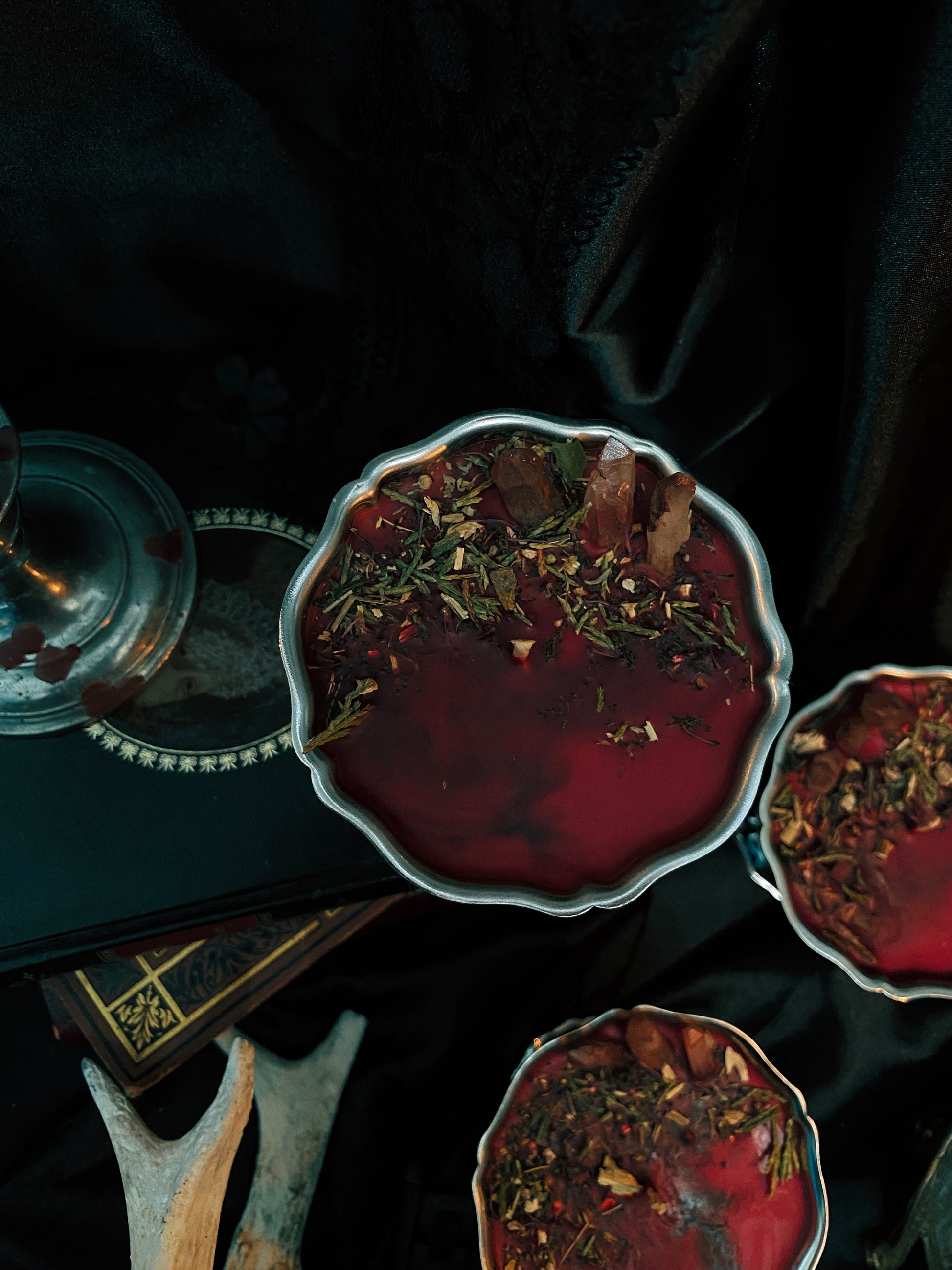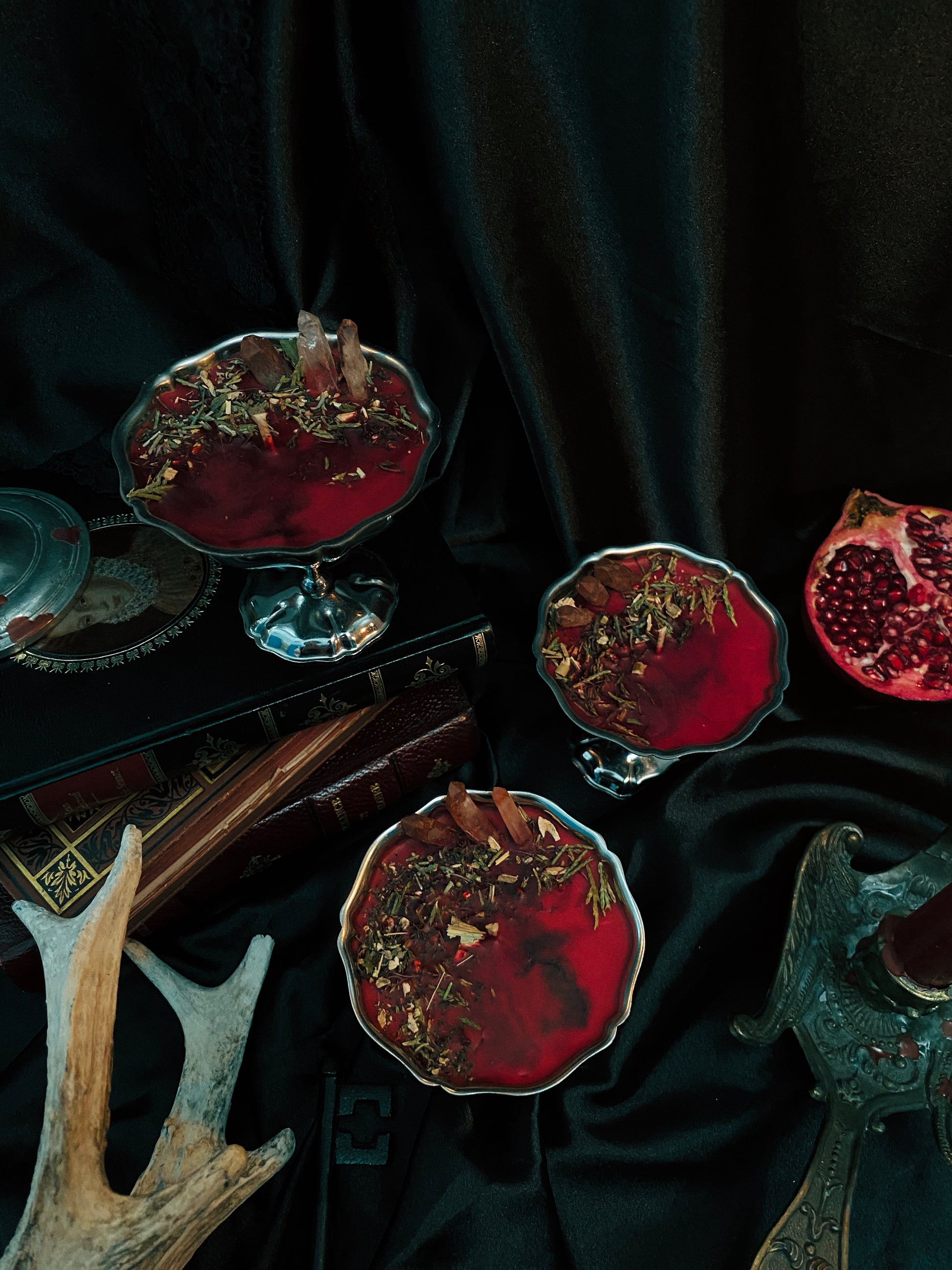 Ornée de trois quartz fantômes, de cyprès, de valériane, de mandragore et d'autres merveilles aux vertus spirituelles.