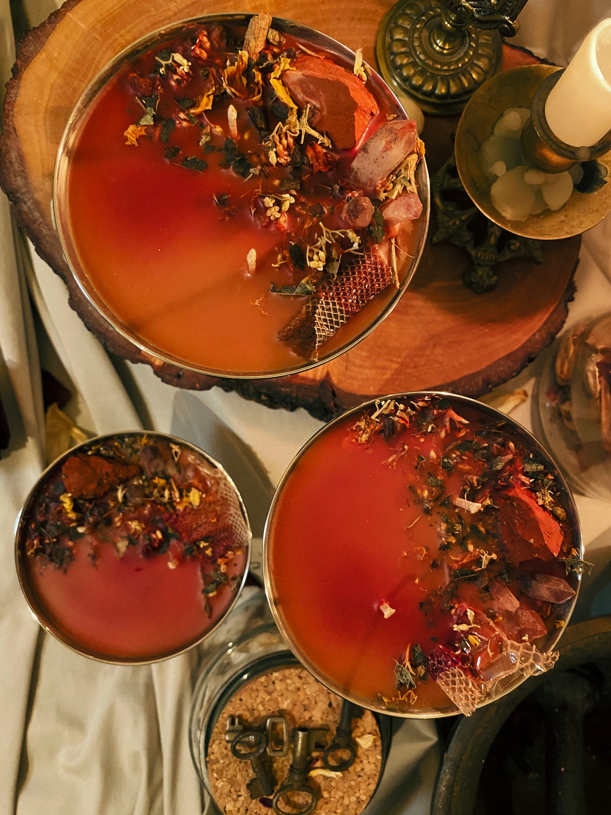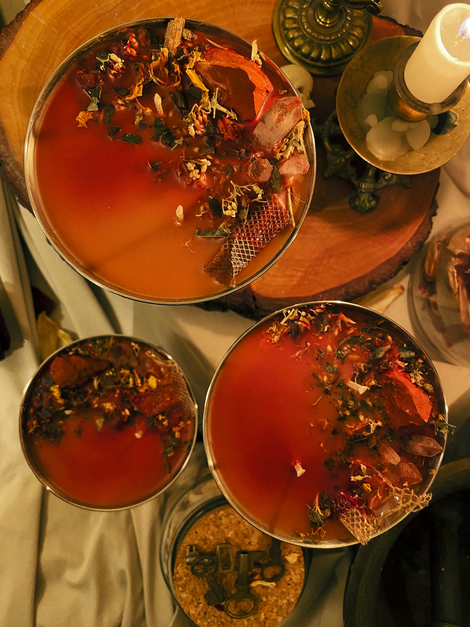 Née des cendres et des chants anciens, cette bougie renferme l’essence des sorcières d’hier et d’aujourd’hui. Elle réveille la magie qui sommeille, insuffle la force, aiguise l’intuition. Allume-la lorsque tu as besoin de te rappeler qui tu es : une femme de feu, de sortilèges et de lumière.