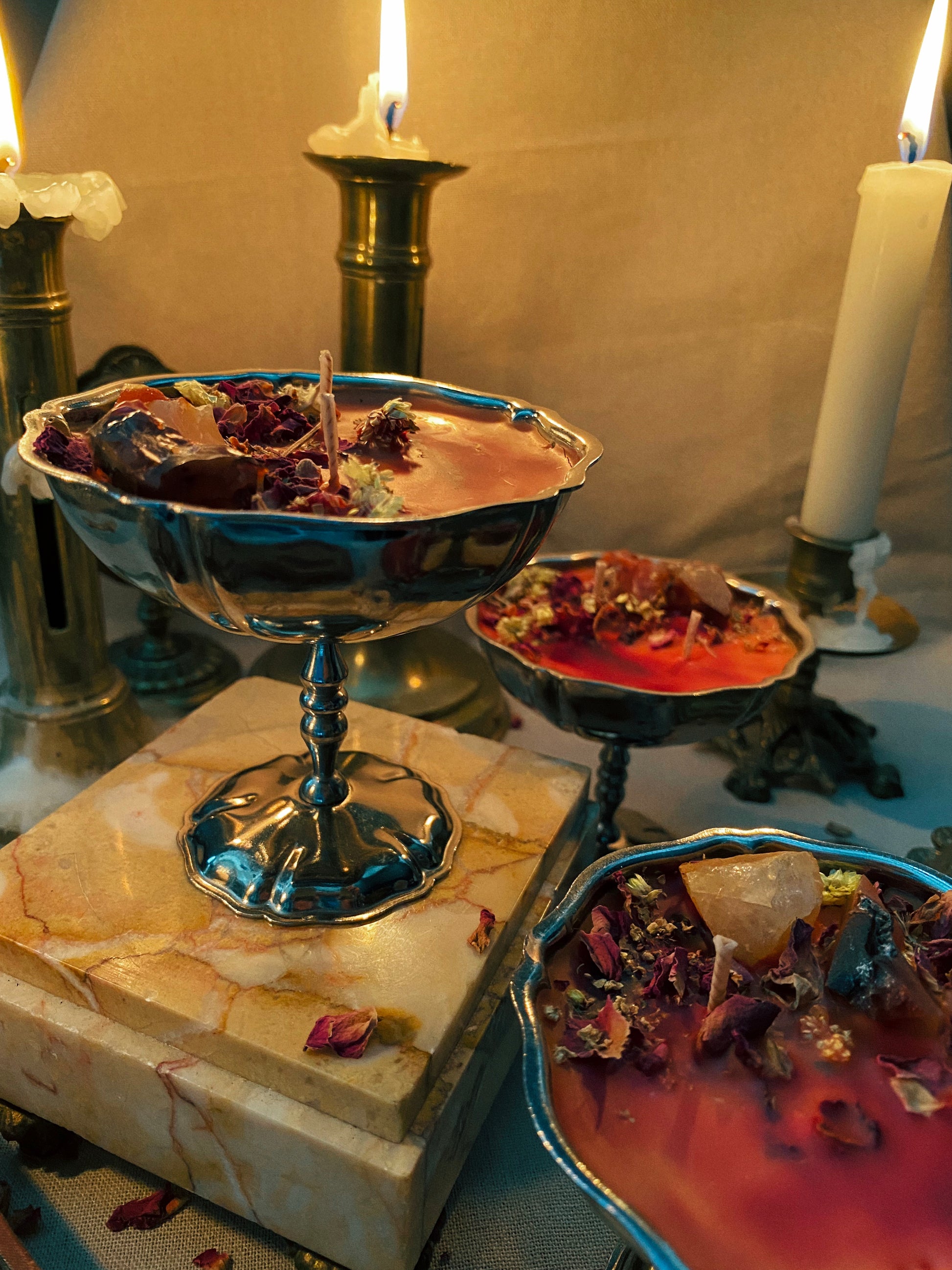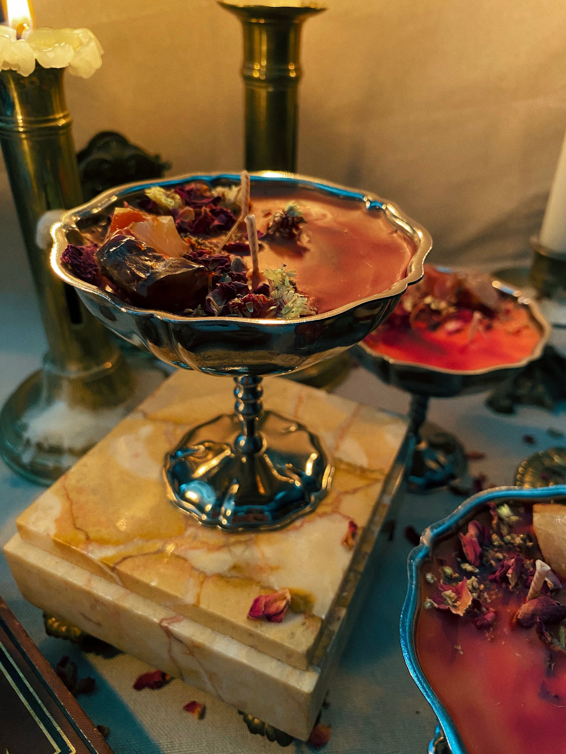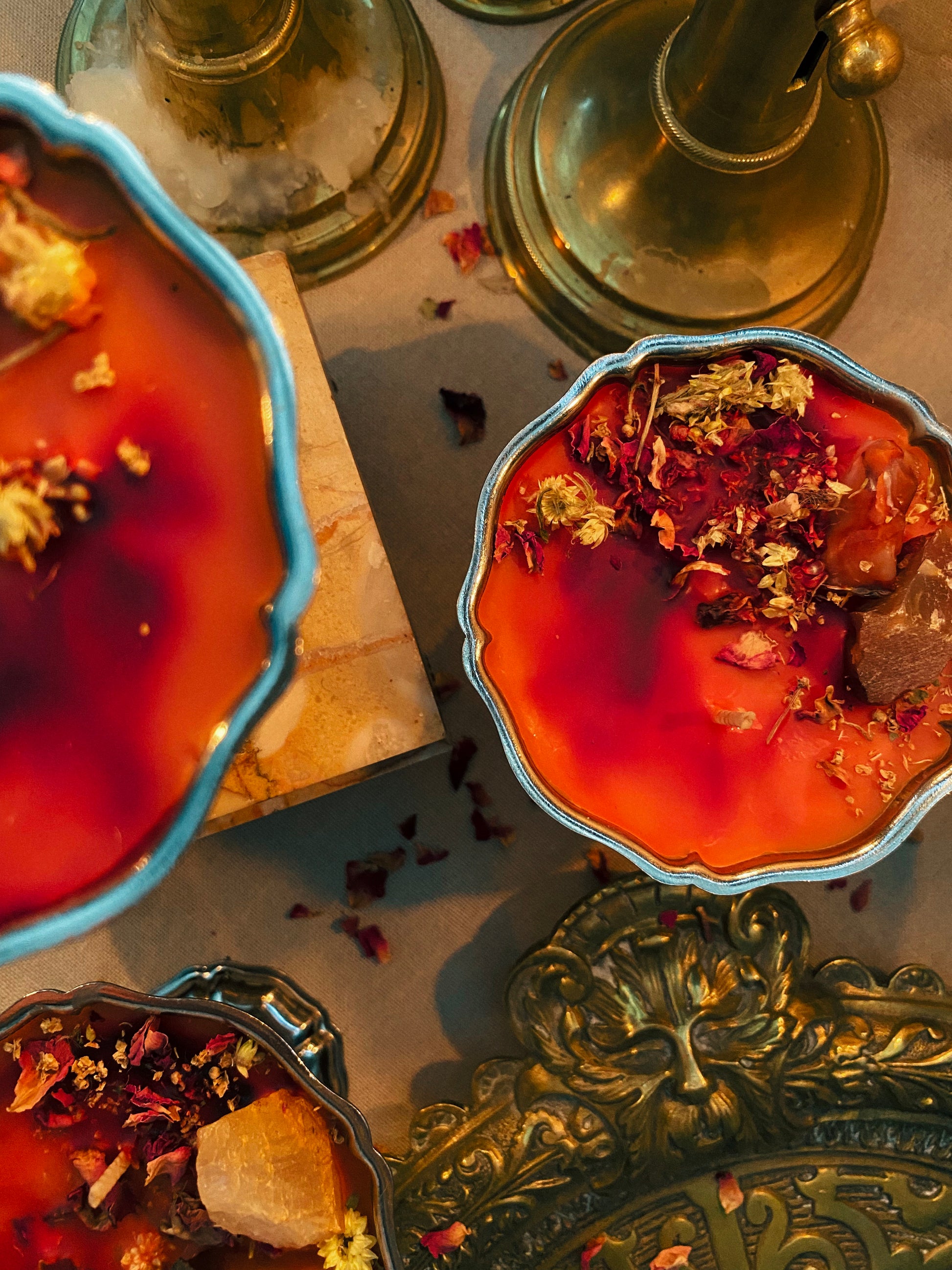 Ornée de cornalines, de pétales de rose, de sureau, d'immortelle et d'autres merveilles aux vertus spirituelles.