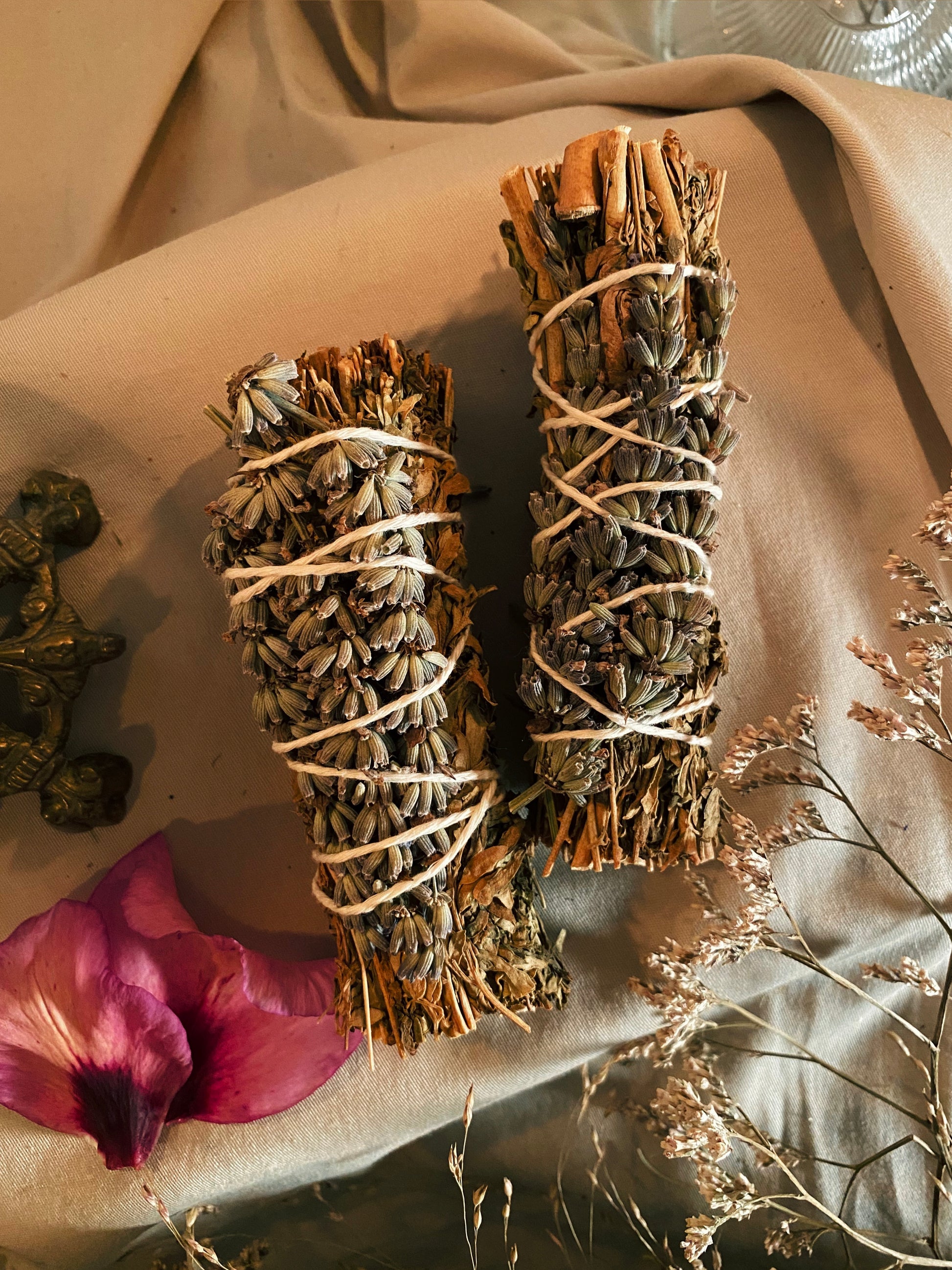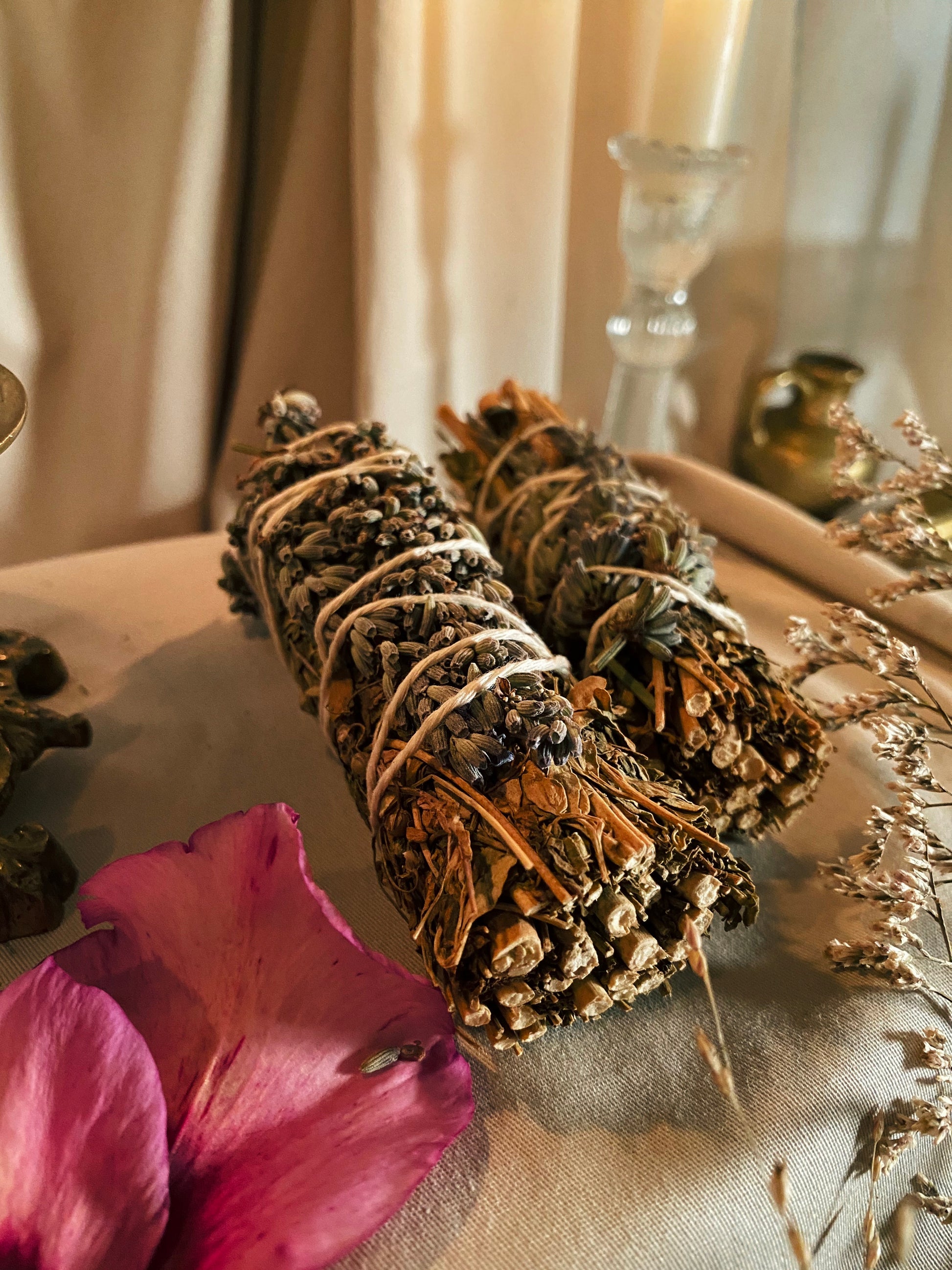Le fagot "Bouclier Apaisant", composé de rue et de lavande, est à utiliser pour clore un rituel, purifier un lieu, ou entourer une intention de lumière protectrice. La rue est l'une des plantes les plus puissantes en protection magique. La lavande, quant à elle, apaise, équilibre, purifie en douceur. Ce bâton agit comme un bouclier lumineux, repoussant les influences néfastes tout en ramenant l'harmonie intérieure.